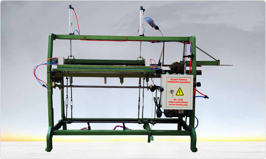 This scarf fringe, shawl fringe, carpet fringe twisting and knotting machine is specially made for twisting and knotting fringes of various scarfs, shawls, or decorative carpets, it is an innovation in scarf making industry.